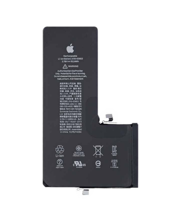 ظرفیت باتریiphone 11 pro max میزان 3969 میلی آمپر است. باتری ایفون 11 پرومکس از نوع لیتیومی و داخلی است. در تست عملکرد باتری ایفون 11 پرو مکس ، این باتری می تواند 20 ساعت برای مکالمه و 80 ساعت برای پخش موسیقی دوام بیاورد. در مقایسه با باتری ایفون xs، این باتری به طور متوسط 11 ساعت و 54 دقیقه و باتری ایفون xs میزان 10 ساعت و 38 دقیقه دوام می آورد.